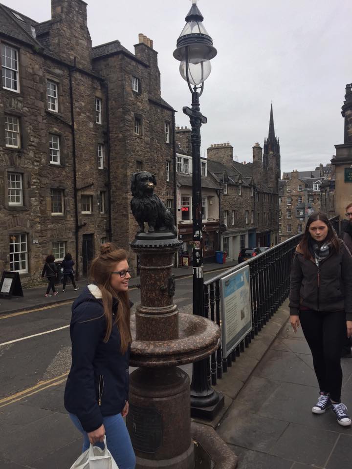 As we approached the graveyard we saw a tombstone outside the entrance to the gravesite. This tombstone marked the grave a Scottish Skye Terrier, known as the Greyfriar’s Bobby. He was a dog who became famous in 19th-century Edinburgh for spending 14 years guarding the grave of his owner until he died himself on January 14th, 1872. The story itself brings a dog lover to squirt out a tear or too, so the tombstone is bittersweet as well when you see it.